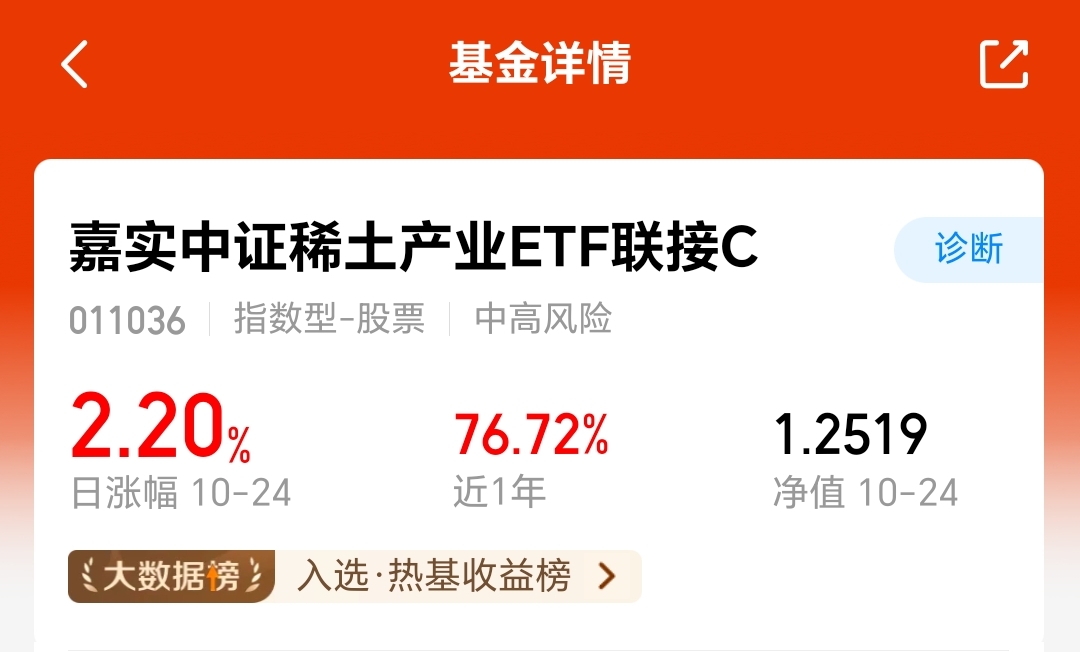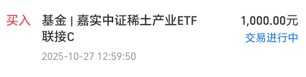 今天我买入$嘉实中证稀土产业ETF联接C(OTCFUND|011036)$1000块钱。