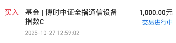 今天我买入$博时中证全指通信设备指数发起式C(OTCFUND|020692)$1000块钱。
