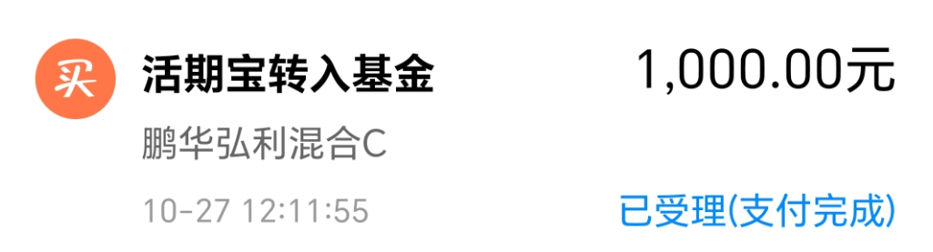 今天我买入$鹏华弘利混合C(OTCFUND|001123)$1000块钱。