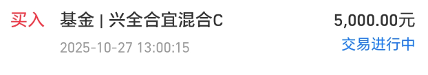 今天我买入$兴全合宜混合(LOF)C(OTCFUND|005491)$5000块钱。