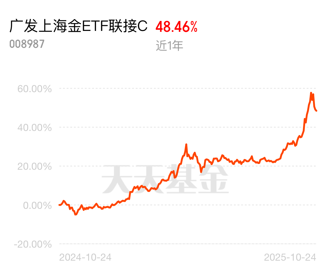 光是看$广发上海金ETF联接C$1年涨幅接近50%就知道这只的含金量,天天基金里