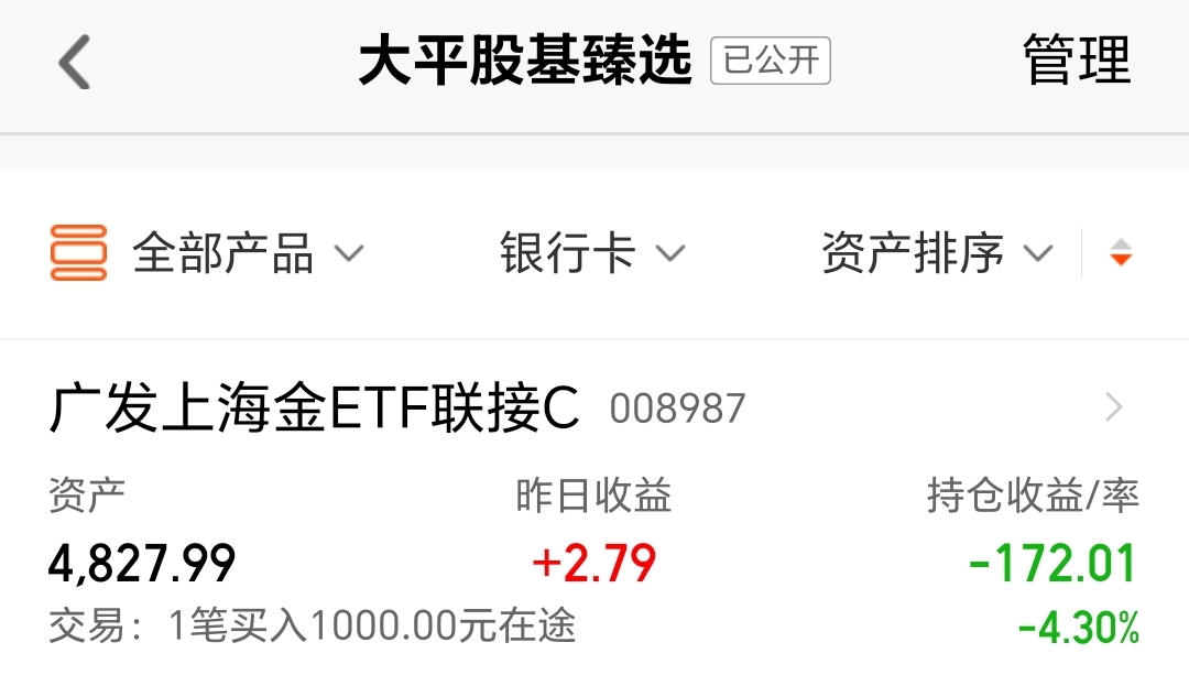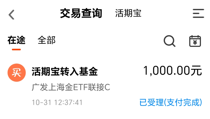 今天我买入$广发上海金ETF联接C(OTCFUND|008987)$1000块钱。