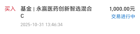 今天我买入$永赢医药创新智选混合发起C(OTCFUND|015916)$1000块钱。