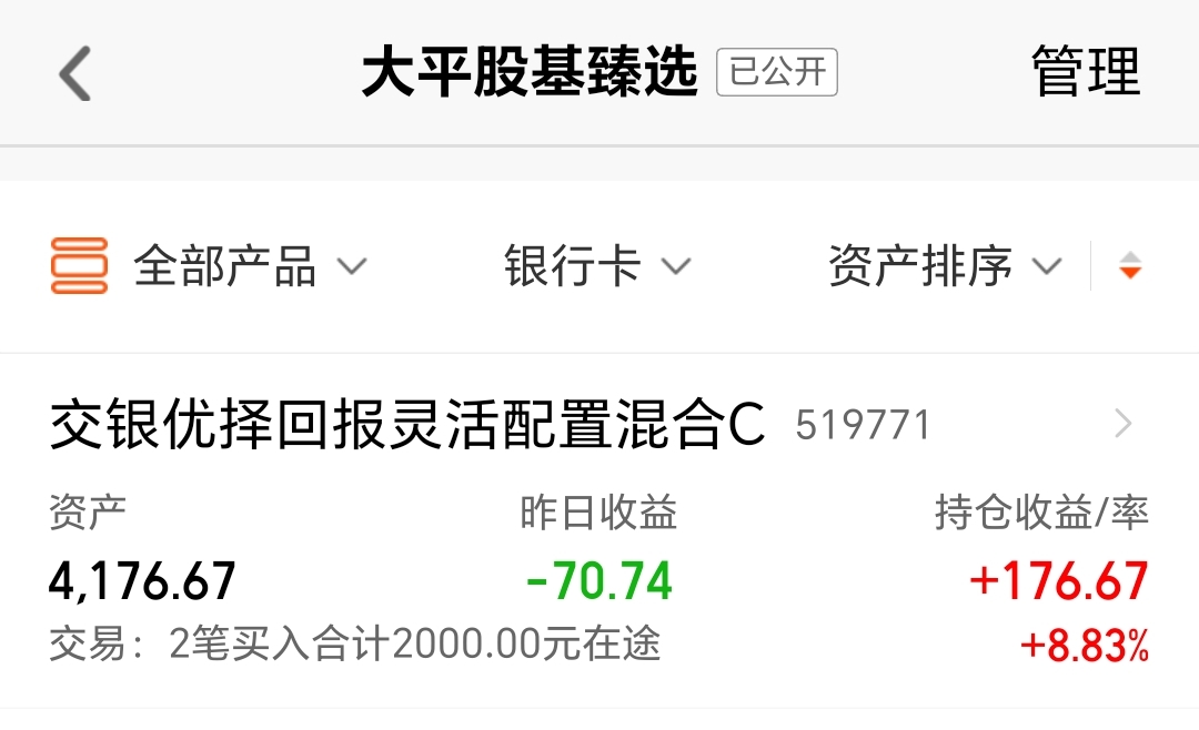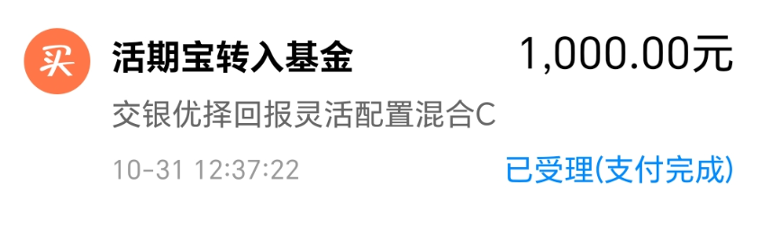 今天我买入 $交银优择回报灵活配置混合C(OTCFUND|519771)$1000块钱。