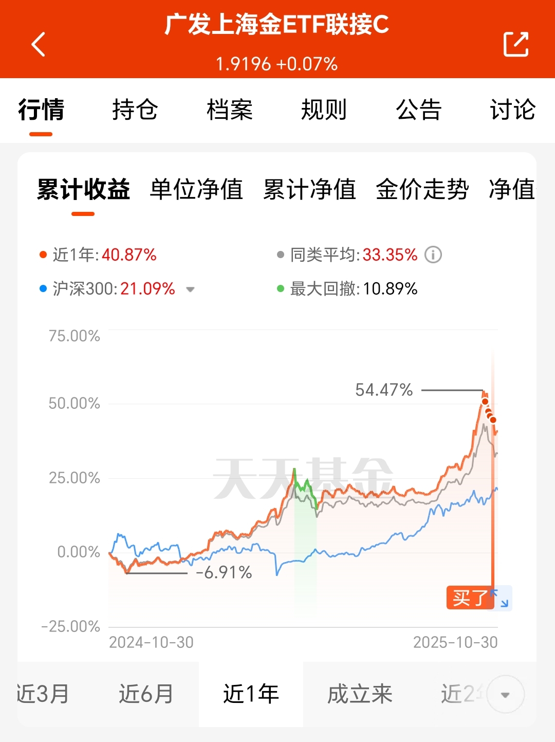 在当前降息周期下,黄金配置价值凸显。这个基金一键布局国内金价,投资更省心,它近一年涨幅超40%,0申购费,持有满7天免赎回费,是非常便捷的。趁着黄金有望见底,我抄底加仓。