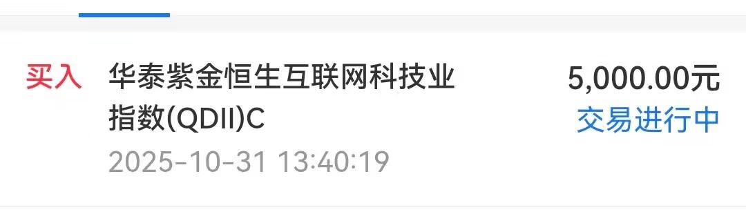 6、华泰紫金恒生互联网科技业指数(QDII)C(018524),买入5000元