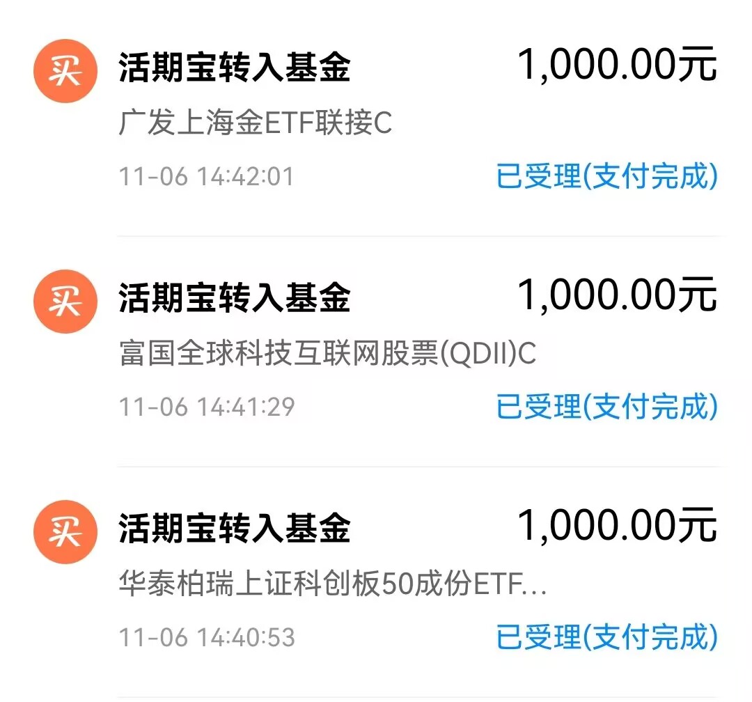 3、$华泰柏瑞上证科创板50成份ETF联接C(OTCFUND|011611)$ ,买入1000元