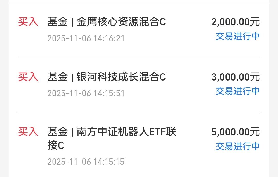 我今天加仓了黄金、富国全球科技互联网、科创50指数、机器人、银河科技成长、金鹰核心资源,其它基金继续持有待涨。