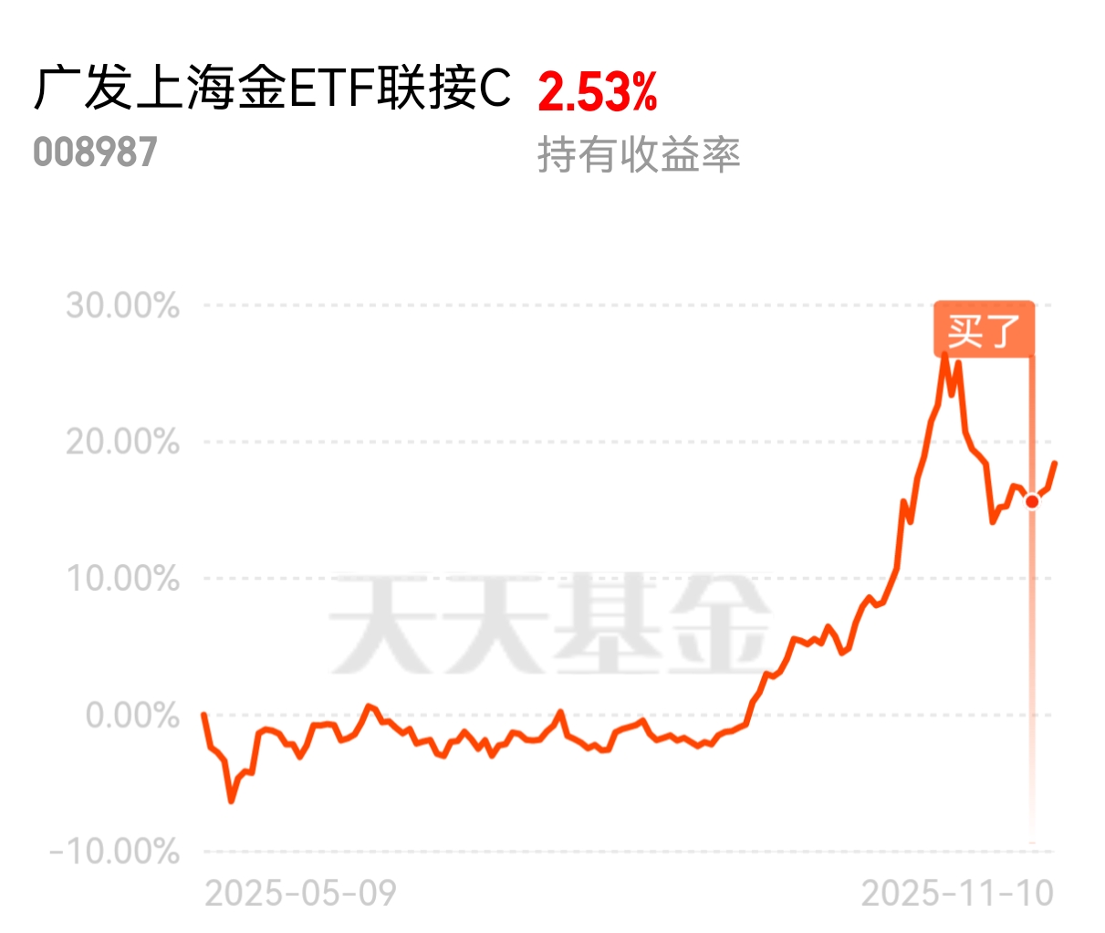 $广发上海金ETF联接C$大涨1.55%,小欧抄底成功!晚上看国际金冲刺20日均