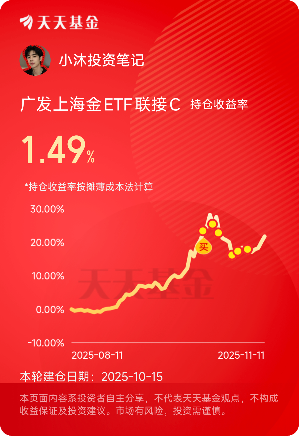 黄金这波稳稳拿捏!入手的广发上海金ETF联接C,持仓收益率1.49%啦~