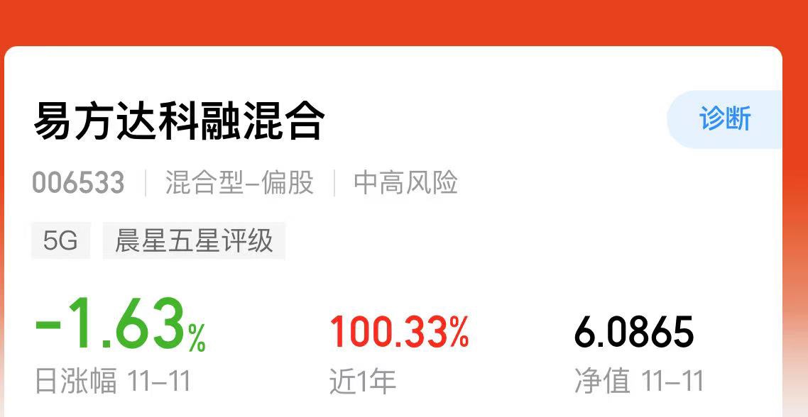 今天市场这波震荡回调太刺激了,低开、反弹、再回落,节奏快得让人跟不上。但大家别乱了阵脚,科技主线的趋势没断,现在的反复是正常蓄力。长期来看,震荡过后继续走强是大方向,我打算趁回调加仓布局。$易方达科融混合$ 值得重点关注,A股+港股双市场,科技+新能源双赛道,业绩能打且覆盖广;同策略的科讯则专注A股,两者各有侧重,按需入手。