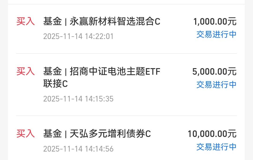 我今天加仓了黄金、有色金属、中证电池、天弘多元增利、永赢新材料智选,其它基金继续持有待涨。