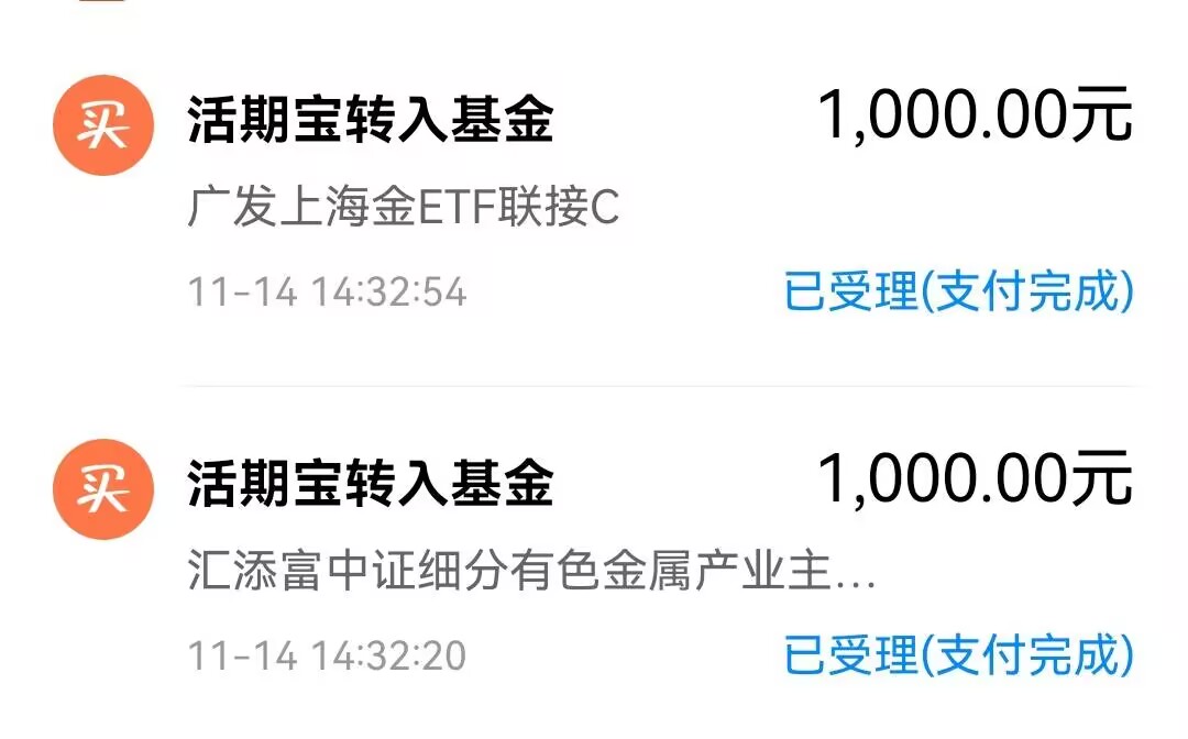 1、$广发上海金ETF联接C(OTCFUND|008987)$ ,买入1000元