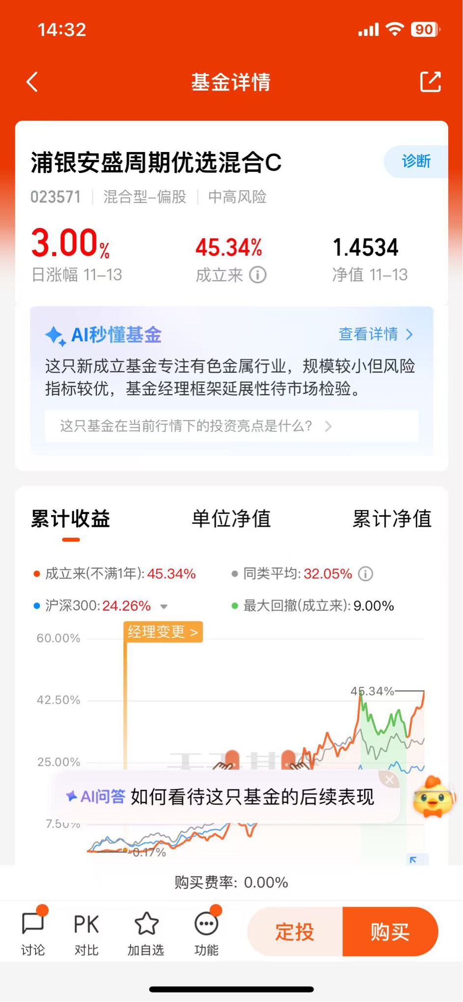 黄金看避险和美元,锂看新能源车销量和产能,铜看供给端和需求端缺口,而$浦银安盛周期优选混合C$ 的基金经理对宏观研究特别深入,尤其是像有色这种典型的强周期行业,简直是拿捏,值得关注