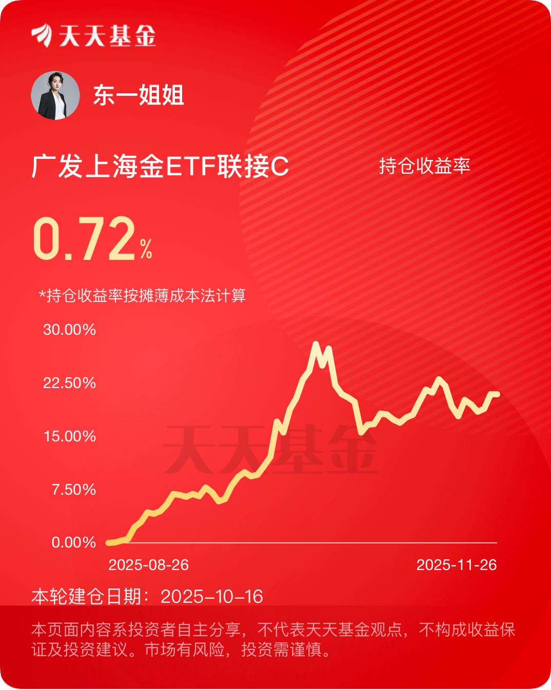 我持有的$广发上海金ETF联接C$ 已经开始赚钱了,接下来一起期待新高吧!