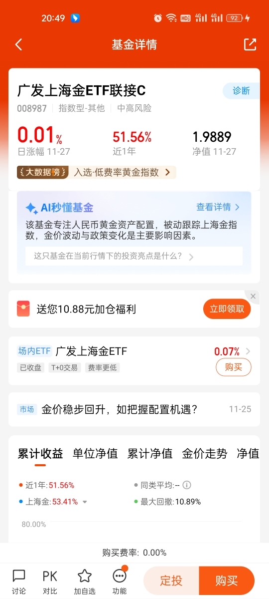 上海金已经4连涨了,主打就是一个攻守兼备,而且这只热度高,投起来更放心