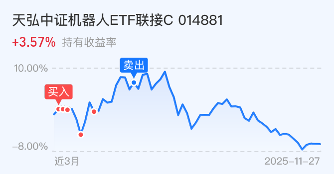 机器人板块今日小幅放量盘中震荡高走,持续做多动力不足,盘中冲高未果也有所回落,截止发稿小幅上涨。不过日线价格看板块近期不断小幅高走也突破了下跌趋势线,之后依旧可看向上。就是中间可能会出现一定的波动,震荡一下再继续上攻。今日不动。$天弘中证机器人ETF发起联接C(OTCFUND|014881)$