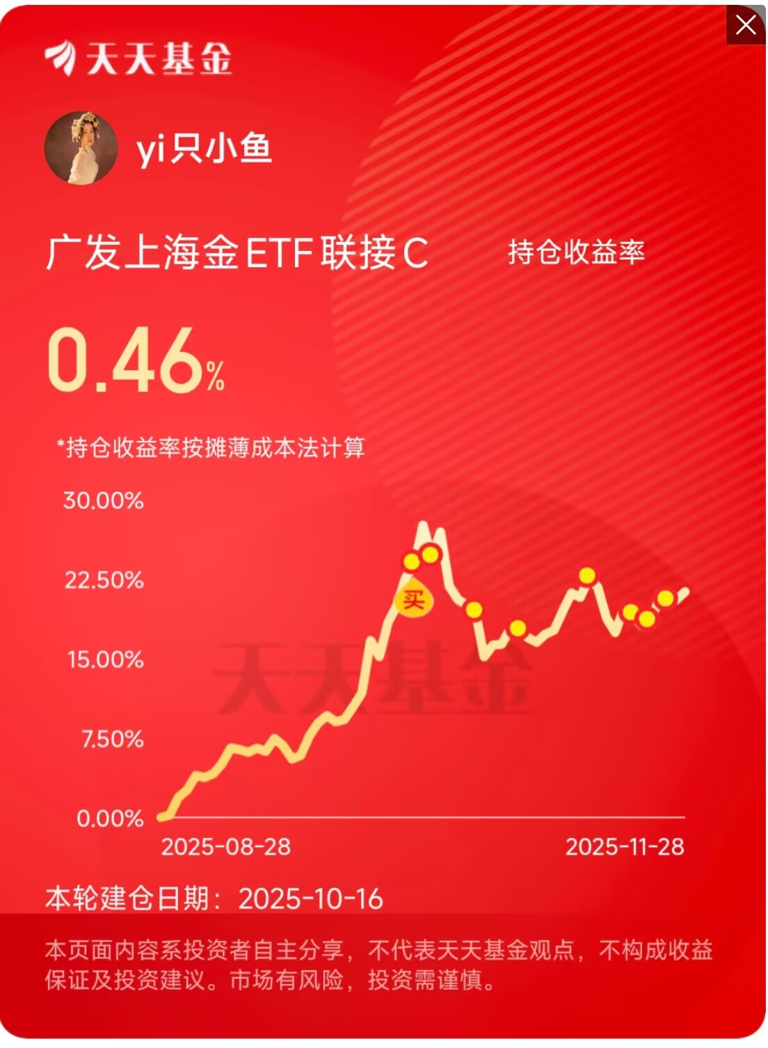 特别是去美化趋势下全球央行不断增持黄金储备,进一步提振了市场投资信心,所以每次板块震荡释放一下风险便会继续高走,相应的进一步打开向上空间。综合来看多重利好催化板块中长期趋势依旧可期,当前我还是继续坚持定投介入,分批买入能够平滑成本也能更好的跟上行情,广发这只近期热度高,近一年收益53.38%,长期收益明显,个人持仓体验佳,就继续选择这只来跟进。