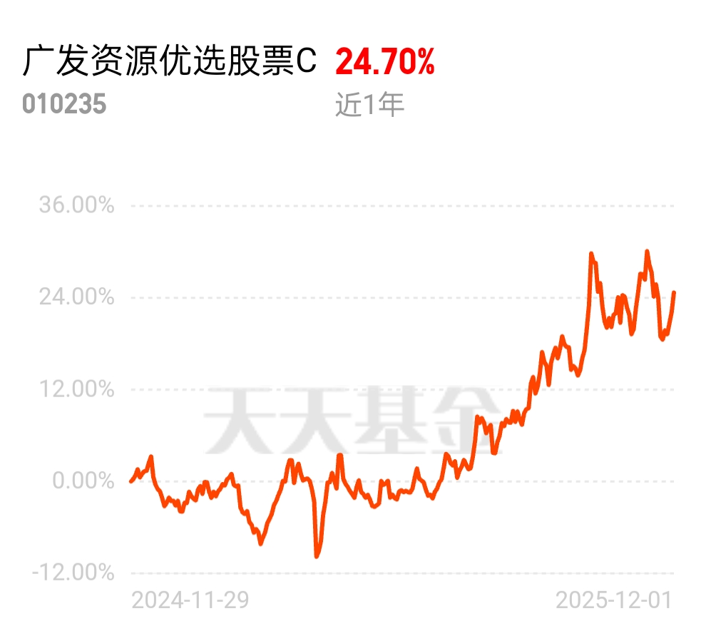 又是超2个点吃的有色金属,$广发资源优选股票C$完全吃不腻,涨涨涨还能涨