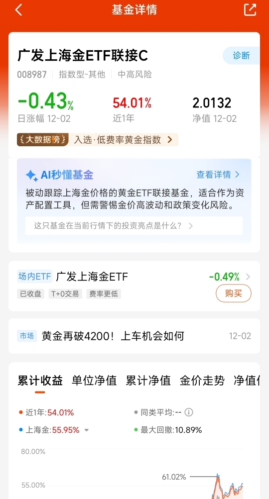 资产配置里需要低相关性的资产。黄金和我的股票、债券账户走势常不同步,配上一点整体账户波动小多了