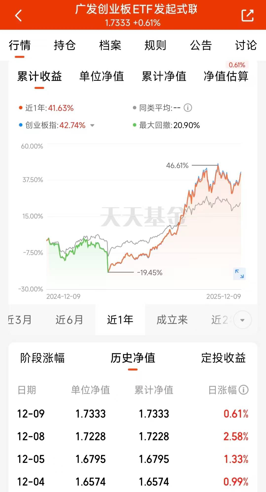 飘红才是创业板的实力嘛!今天小一个点错不了,加仓$广发创业板ETF发起式联接C$