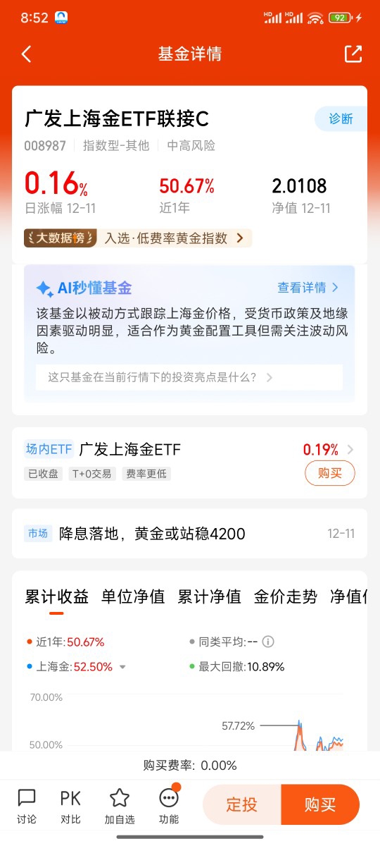 看今天金价又涨了,我就知道这里要红,果然拿到了0.16%的收益,开心
