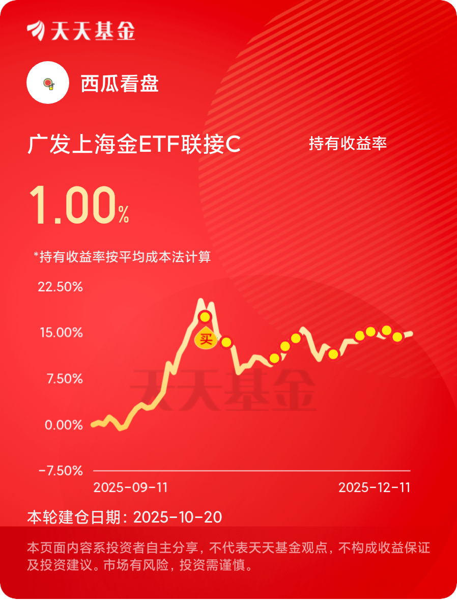 美联储降息已经落地,黄金还要继续往高处走,目前我的$广发上海金ETF联接C$已经