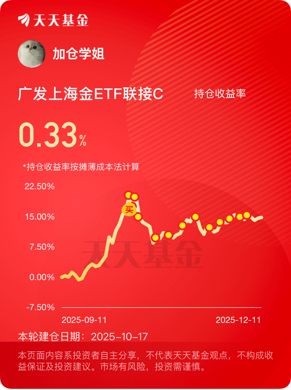 青青草原一点红,今天黄金逆势防御,刚看收益更新,$广发上海金ETF联接C$ 前面囤的金已经开始生金,降息到来,黄金的价值又香了#晒收益#