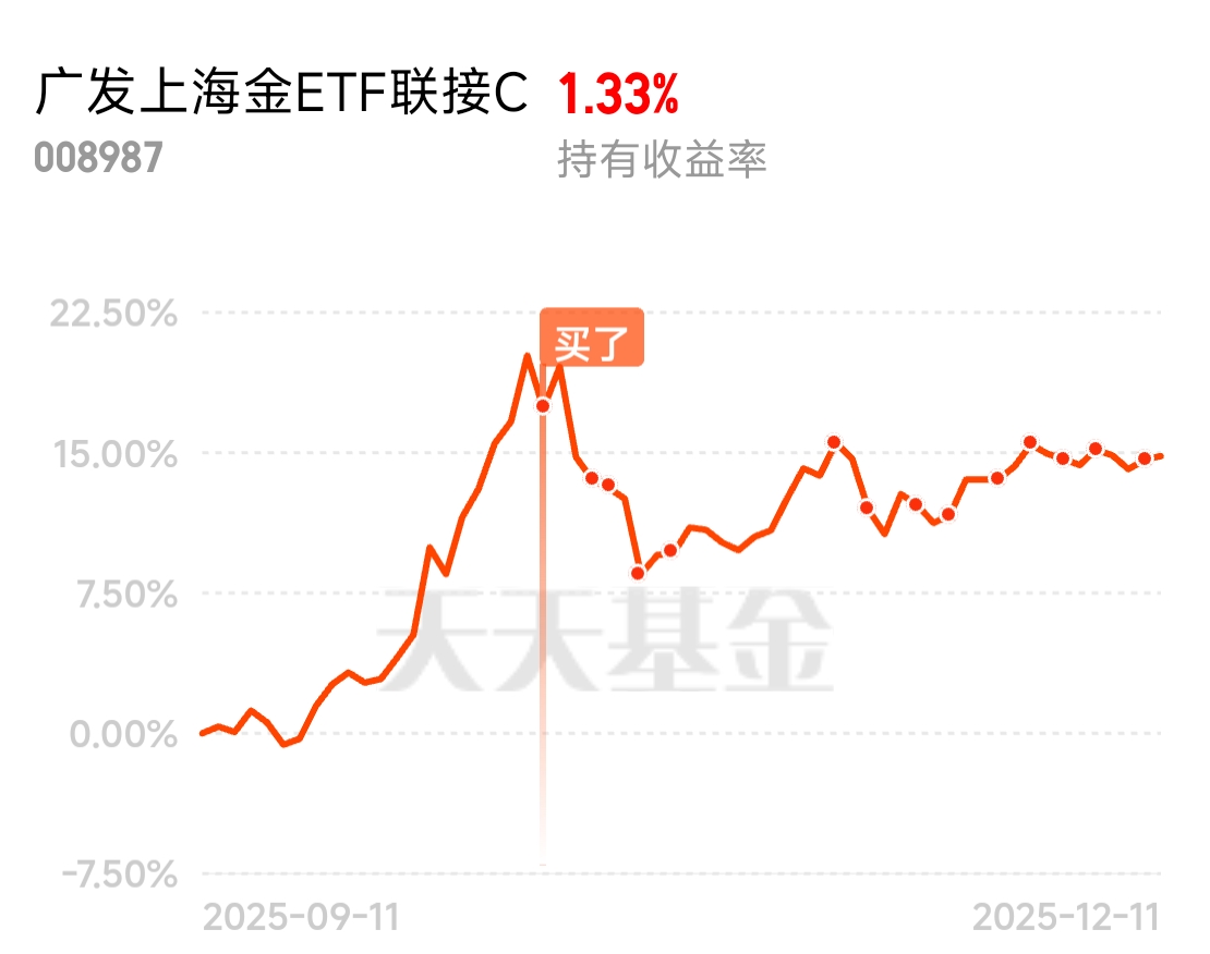 $广发上海金ETF联接C$ 真香黄金,黄金真香,市场震荡时能缓冲风险,行情好的时候也能跟着黄金涨。长期稳中有进,定投好啊,现在金价也是早已破了4200美元,且投且珍惜啊!