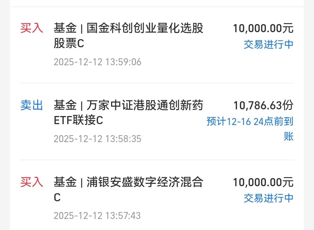 2、$国金科创创业量化选股股票C(OTCFUND|025659)$,买入10000元