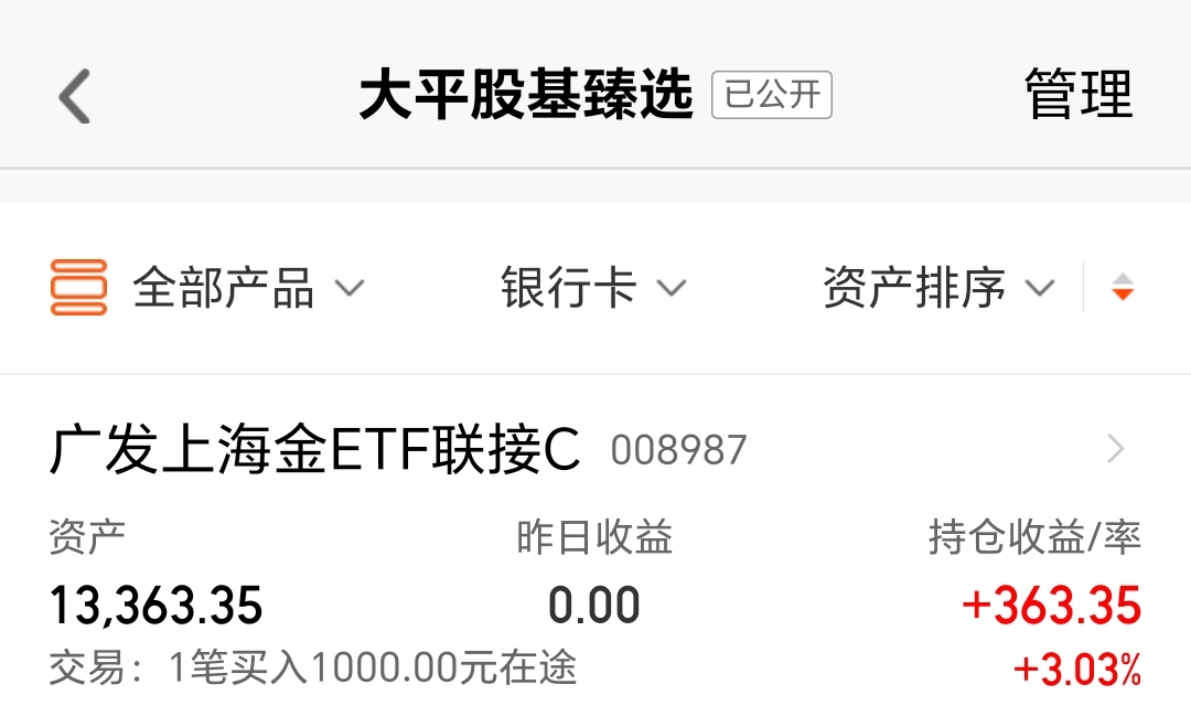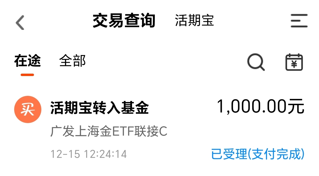 今天我买入$广发上海金ETF联接C(OTCFUND|008987)$1000块钱。