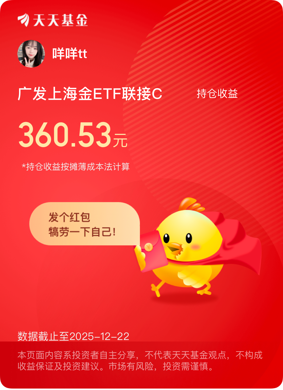 $广发上海金ETF联接C$ 现货黄金今天盘中创历史新高!咩咩投黄金的时候怎么说来着,说了不急不急还能涨,现在你们信了吧。#晒收益# #现货黄金创历史新高!你上车了吗?# #青禾创作计划#