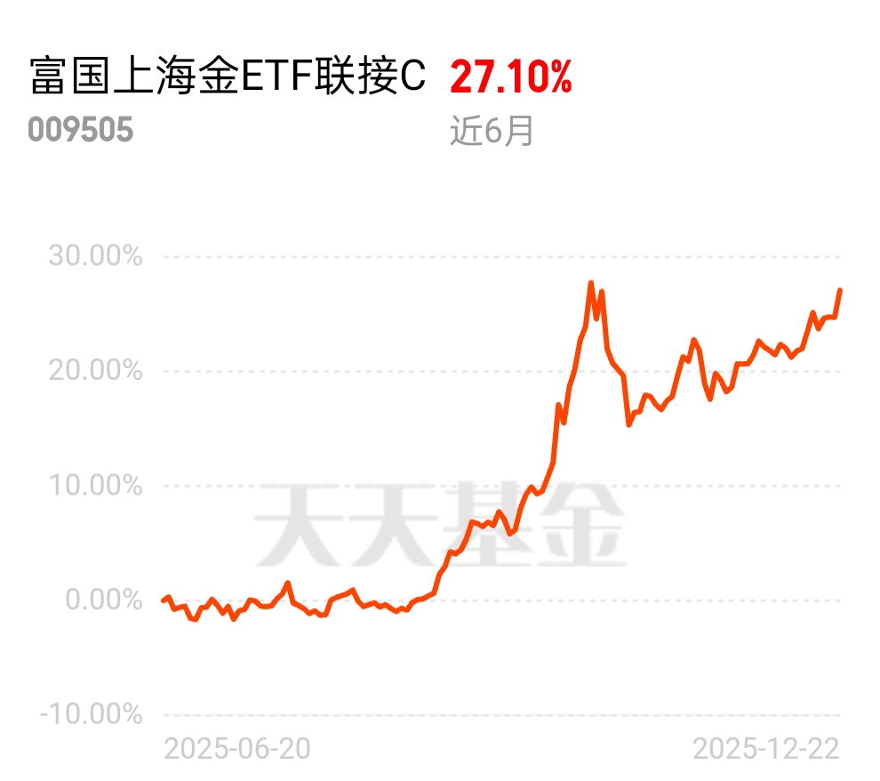 昨天富国上海金ETF联接C又涨了,今天行情也挺让人期待;它近1个月涨了8%,超越了包括广发上海金ETF联接C在内的大多数同类产品。这只基金由一位有10年经验的“老船长”管理,什么大风大浪都见过,拿在手里特别安心。它主要跟踪上海金金价,黄金作为抗通胀和避险资产,近期受全球货币政策转向宽松预期和央行持续购金支撑,中长期配置价值被不少投资者看重。如果你也在关注这类压舱石型资产,可以看看富国这只的展示。$富国上海金ETF联接C$