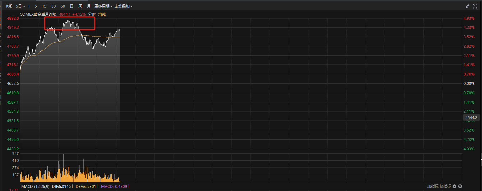 今天黄金又开始爆发了,国际金价涨幅一度接近5%。