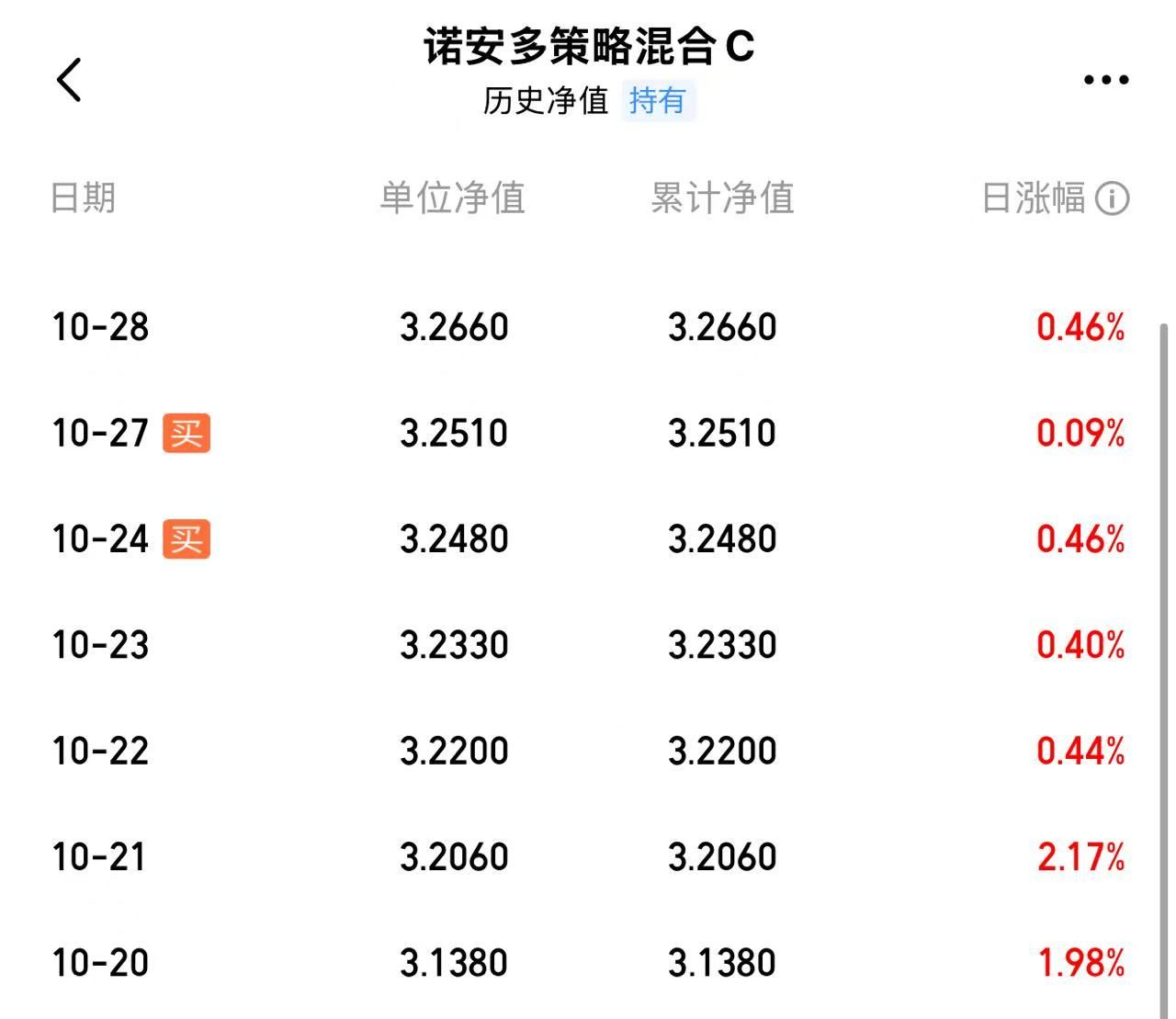绝了!在大盘跌超1%、科技股一片哀嚎的今天,诺安多策略混合C(023350)的净值居然又双叒叕创了历史新高!这种独立行情看得我热泪盈眶。它持仓的微盘股龙头根本不受科技板块调整影响,走自己的上涨节奏。这才是我要的“稳稳的幸福”!#慢慢投基路 你悟出了哪些投资哲学?#