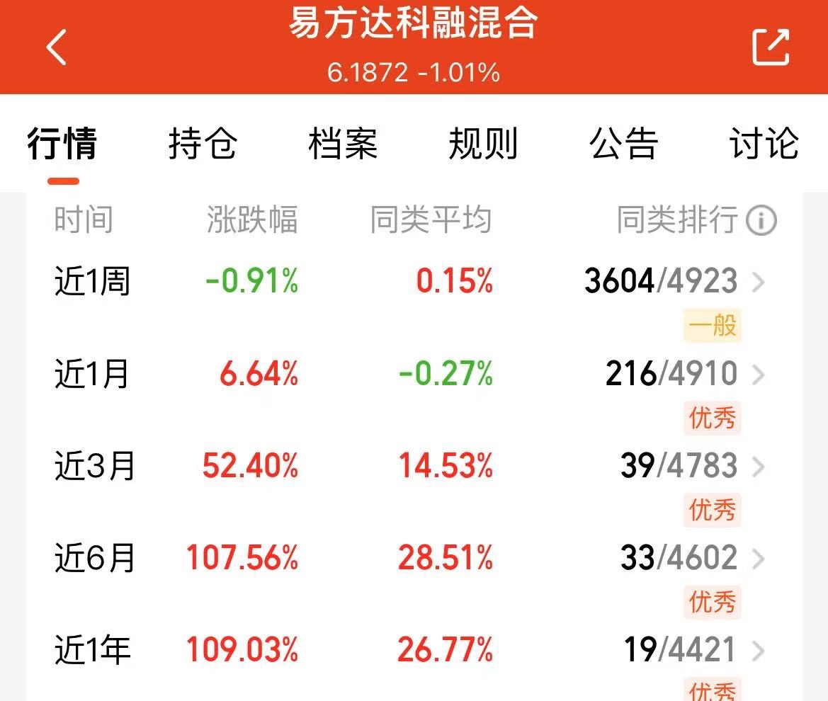 昨夜美股科技股集体飘红,今天A股科技股高开低走,市场依旧处于震荡重整阶段。这种行情下,就得配点抗风险的基金,易方达科融混合很对路。基金经理实力在线,回撤控制到位,采用A+H双市场策略,和科讯一致,不重仓单一赛道,兼顾科技与新能源等反内卷领域,分散风险更安心。