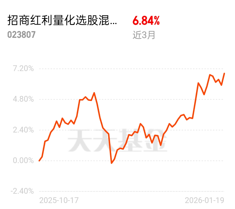 最近不少人转投红利量化基金,毕竟波动小收益稳,$招商红利量化选股混合C$ 值得关注!近 3 月涨 6.84%,近三个月大幅跑赢,超额收益近 10%,今日估值飘红,当成底仓再合适不过。