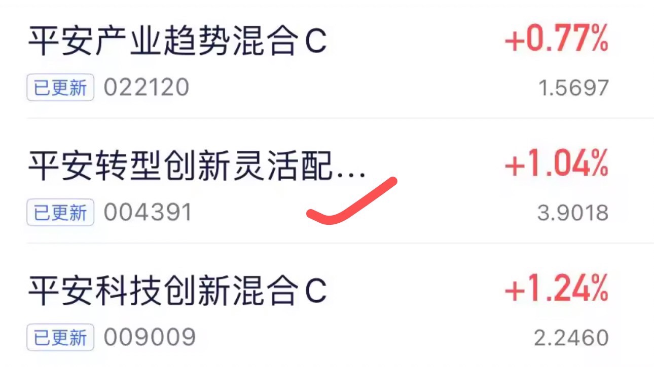 $平安产业趋势混合C$上涨0.77%