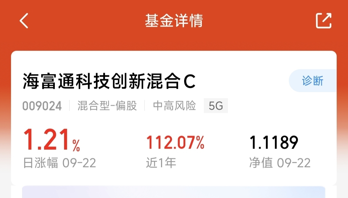 虽然目前市场还是有点分化,但是科技的整体表现依然值得期待。$海富通科技创新混合C$ 这是主动的科技基金。聚焦大科技的表现一直不错。今天又上涨了1.21%。近一年涨幅达到了112.07%。一直在不断创新高。而且主动的科技基,经理做到了精准灵活的调仓,遇到波动的稳定性也是比较好。我非常看好长期的成长表现。