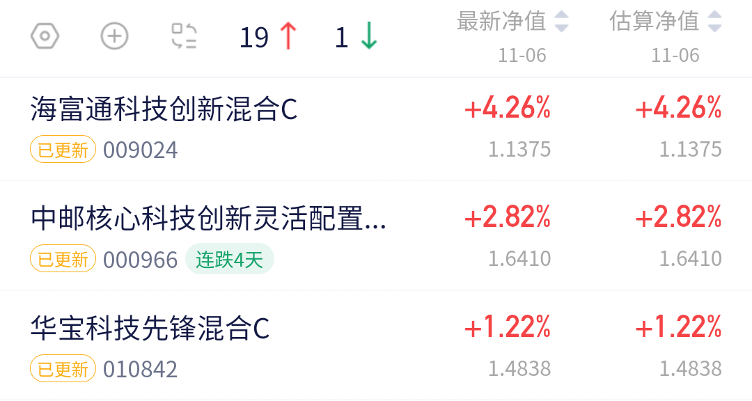 $海富通科技创新混合C(OTCFUND|009024)$上涨4.26%