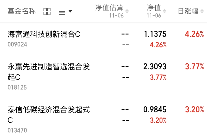 今天的科技巨头集体发威,寒武纪再次超越了贵州茅台。我之前减仓了半导体芯片,所以说今天的收益没有之前好了。$海富通科技创新混合C(OTCFUND|009024)$上涨4.26%,$永赢先进制造智选混合发起C(OTCFUND|018125)$上涨3.77%,$泰信低碳经济混合发起式C(OTCFUND|013470)$上涨3.2%。