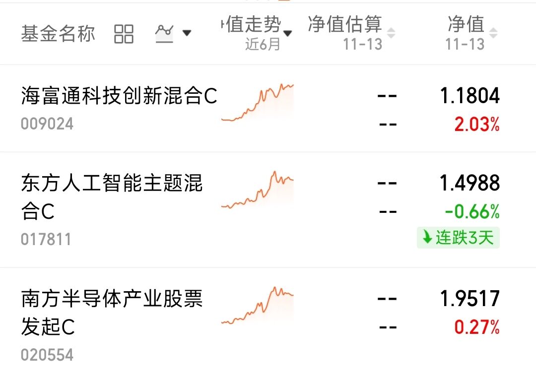 今天的上涨还是比较符合预期的,毕竟昨天下午开始利好就不断的刺激。板块也出现了很好的反弹,但是出现一定的内部分化,$海富通科技创新混合C(OTCFUND|009024)$今天上涨2.03%,$东方人工智能主题混合C(OTCFUND|017811)$下跌0.66%点,$南方半导体产业股票发起C(OTCFUND|020554)$上涨0.27%。