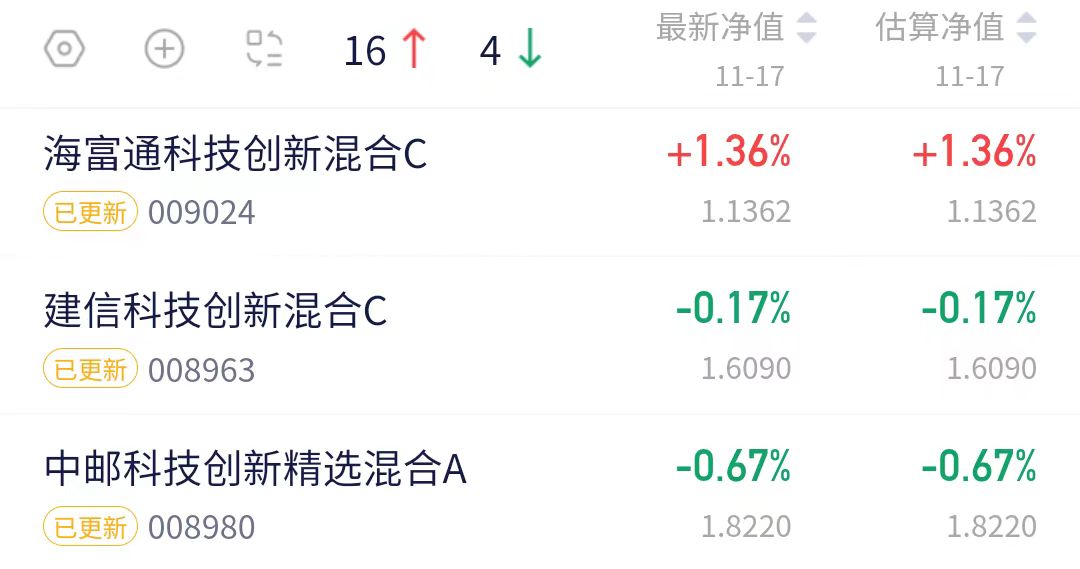 $建信科技创新混合C(OTCFUND|008963)$今天调整0.17%$中邮科技创新精选混合A(OTCFUND|008980)$今天调整0.67%