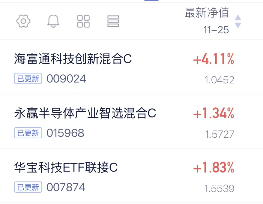 今天大A终于反弹啦,这几天可把我急的呀,今天能弥补好些亏损了,科技板块表现不错,北向资金也持续加码科技股,我继续看好上涨趋势,来看看净值更新