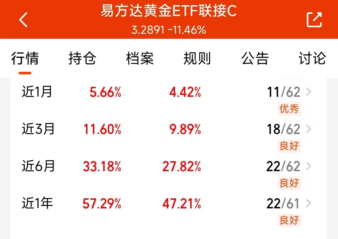 近期比较关注黄金,易方达黄金 C 近 6 个月收益 33.18%,持有时间越长收益表现越亮眼,整体很靠谱。黄金兼具商品和货币属性,避险能力突出。翻查历史数据发现,美联储开启降息周期后,黄金往往会迎来不错的上涨行情,后续值得持续关注。