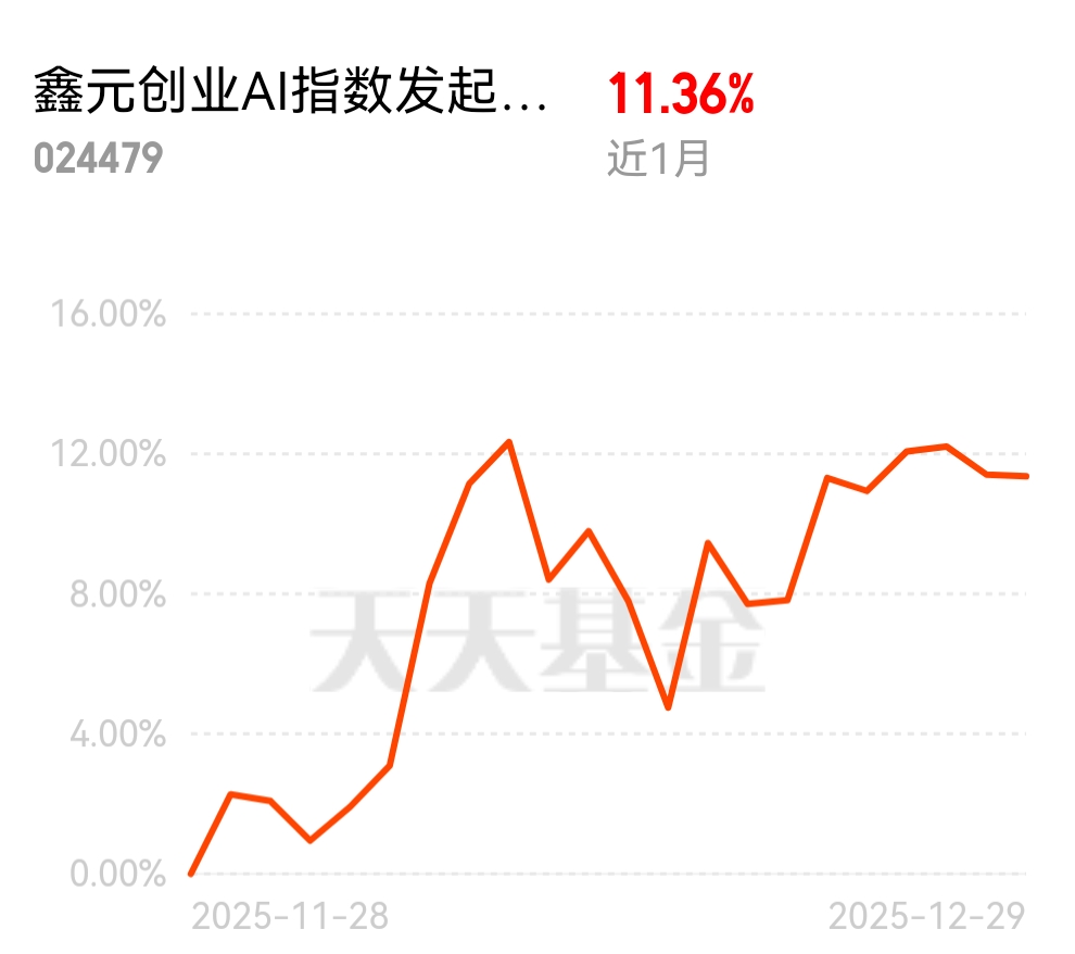 $鑫元创业AI指数发起式C$给力!近1月涨11%+,中长期稳稳向上,紧扣AI算力
