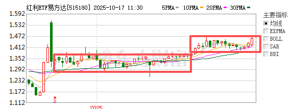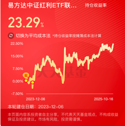 3、从收益率上看,$易方达中证红利ETF联接发起式C(OTCFUND|009052)$这基近6个交易日,有5个交易日收红,且有连续收红的趋势。说明了大资金对这个方向的认可,尤其是以小登为代表的科技震荡的时候,总体上还是有点强势的。
