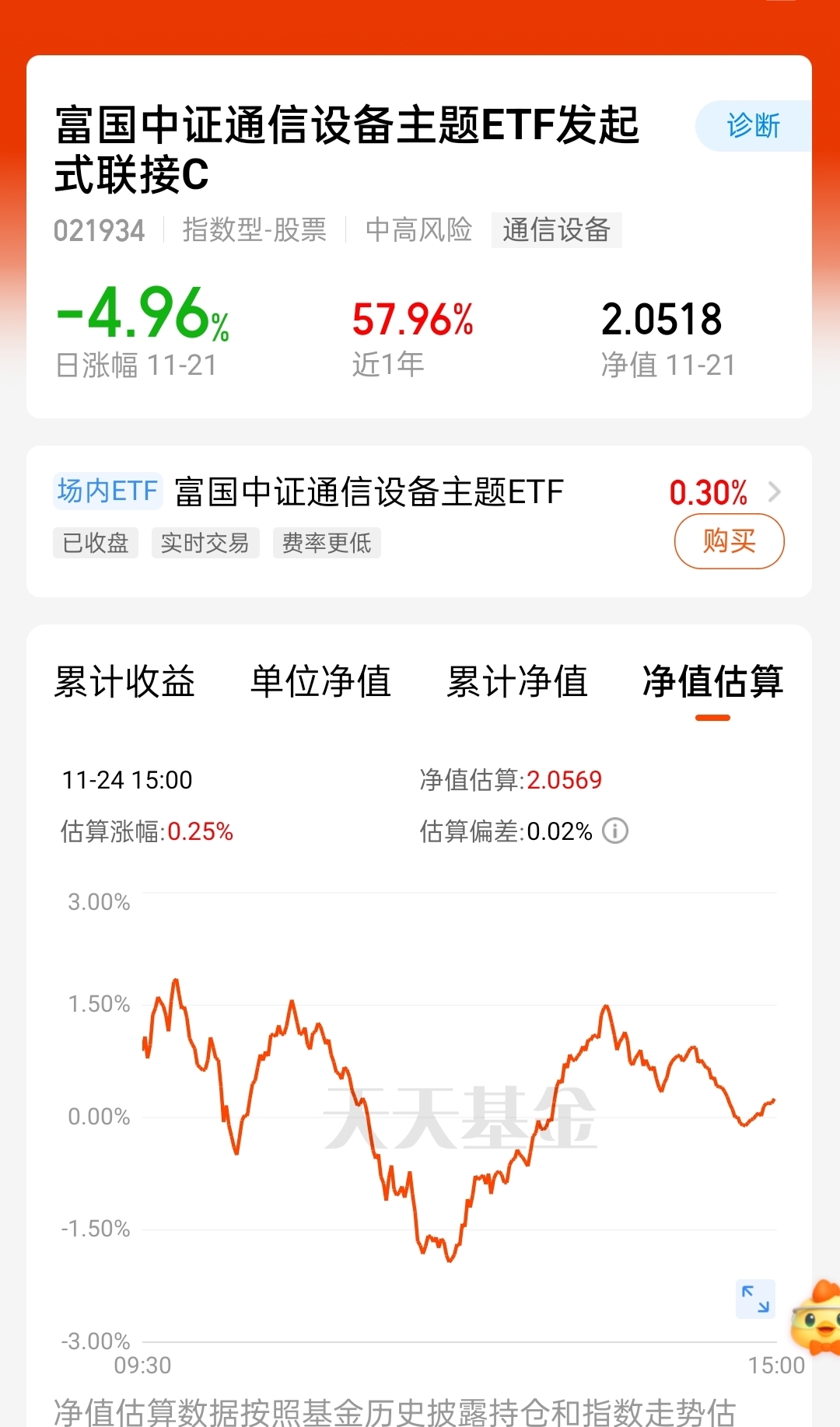 当前易方达红利一直磨人,转头看富国中证通信设备主题ETF联接C,近3个月涨11%