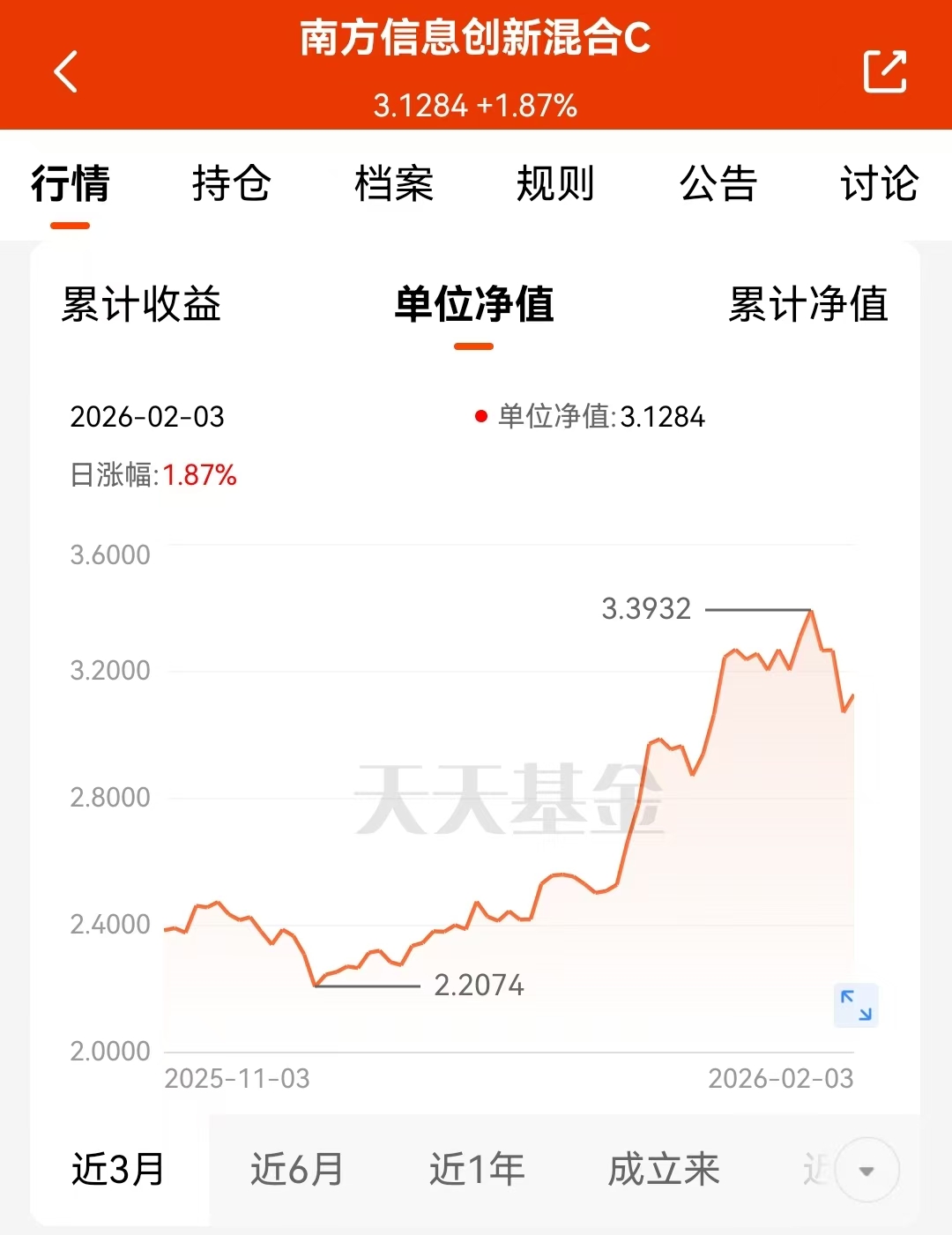 看看$南方信息创新混合A$ 近一年的表现,收益超91% ,半导体板块确实有它的道理。趁着近期波动我买了点。半导体现在有国产替代的长期逻辑支撑,行业也处于复苏通道,需求端在慢慢改善。南方信息创新混合C主要投资半导体相关领域。明年在多种需求驱动下,半导体企业盈利有望实现较大增长,目前趋势保持得不错,机会值得关注。#2月基金投资策略#