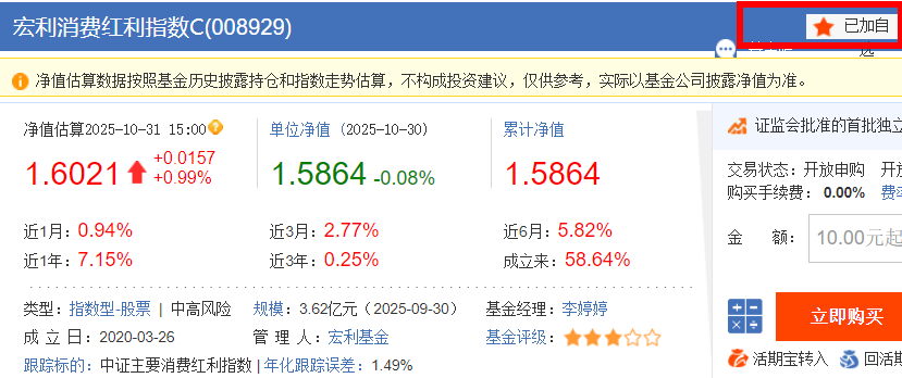 通过对 3 只主流消费基金的跟踪验证,宏利价值长青混合 C(009142)表现突出:10 月 24 日大盘下跌 1.2% 时逆势上涨 1.1%;10 月 30 日最新净值 0.8814 元,较 3 个月前的 0.7010 元累计收益达 26.02%。该基金凭借 "高弹性 + 强抗跌" 的特性,成为消费资产配置的核心标的。